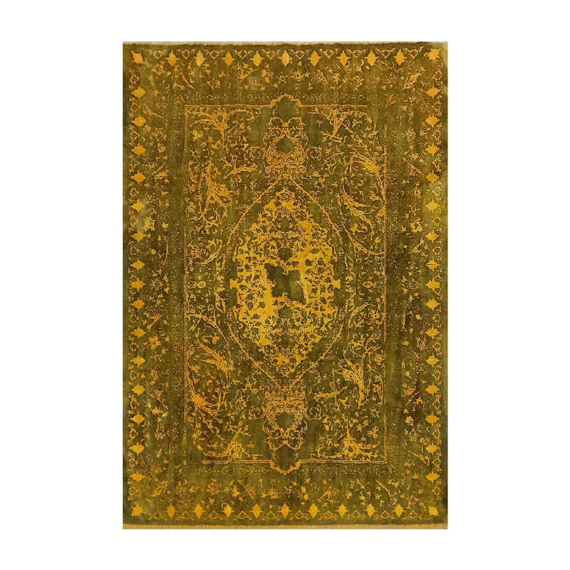 فرش طرح بیشه نقشی مدرن شده از نقوش کتیبه ، بافته شده با پشم دستریس و ابریشم